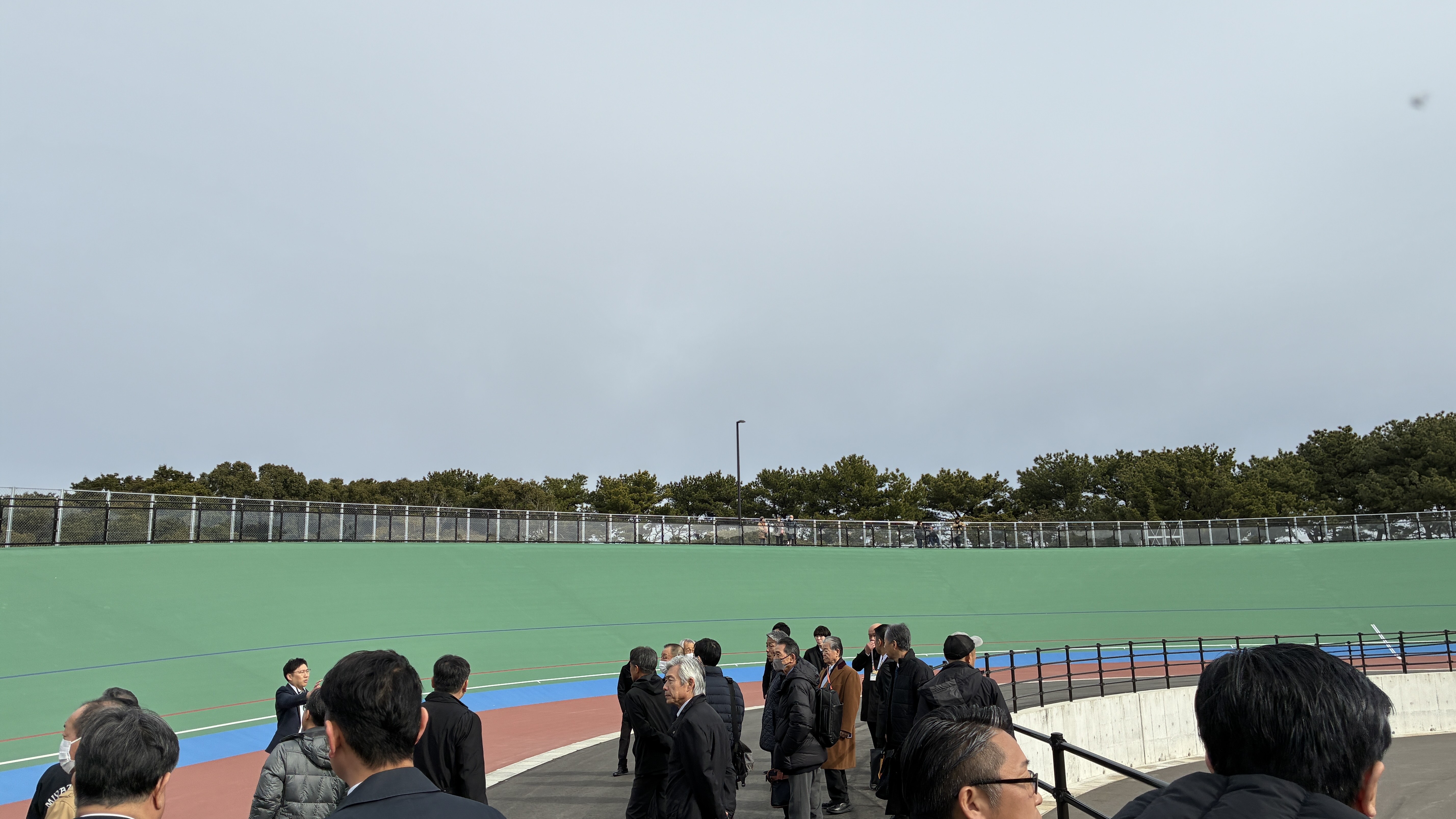 本日、晴天のもと、ひなたベロドローム宮崎のオープニングセレモニーが行われました。施工者の一代表者として、そのセレモニーに出席してまいりました。 当社は、インフィールド舗装工事と、外周道路及び駐車場舗装工事を施工させて頂きました。ご協力いただいた関係者の皆さん方にも感謝です。 本日の式典は下記の通りです。 ➀主催者あいさつ(宮崎県知事) ➁来賓あいさつ (宮崎県議会議長) ③来賓あいさつ (宮崎市長) ④来賓あいさつ (宮崎県自転車競技連盟会長) ⑤ネーミングライツ授与式 ⑥ゲスト挨拶 (日本自転車競技連盟副会長/中野浩一) ⑦テープカット