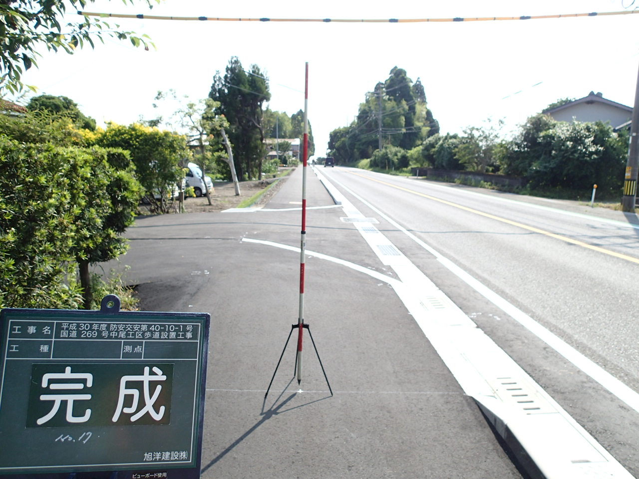 平成30年度 防安交安 第40-10-1号 国道269号 中尾工区 歩道設置工事 現場代理人 宮原 大祐 発注者 宮崎土木事務所 工 期 平成30年11月 8日 ~ 令和元年 6月20日