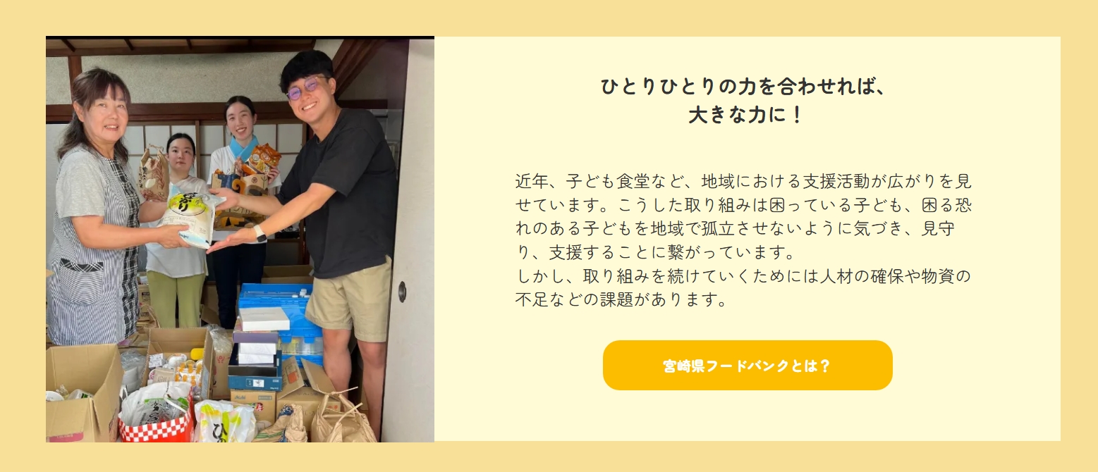 昨夜の寄贈式では、お米や菓子類など400キロの食品が集まって、それを宮崎県保健福祉部こども政策局の担当者の方に渡してました。