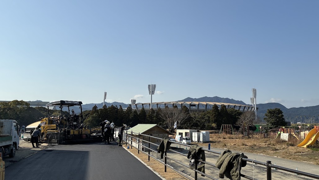 1月も今日まで。新年になって、現場の稼働も順調に来ました。本日がオープンセレモニーのひなたベロドローム宮崎の施工も、当初は他工区の遅れもあり、厳しい工程の中で施工する事となりましたが、今月は雨が降らなかったので、何とか間に合わせることが出来ました。宮崎市では1月の降水量が初めてゼロとなる、異常な乾燥が続いております。山火事も発生しています。一般火災も発生しています。農家の方々には、水不足で作物に影響が出ているみたいです。晴れが続いてくれて、助かった我々ですが、雨が降らず、苦労している方の事を考えると、一概には喜べませんね。